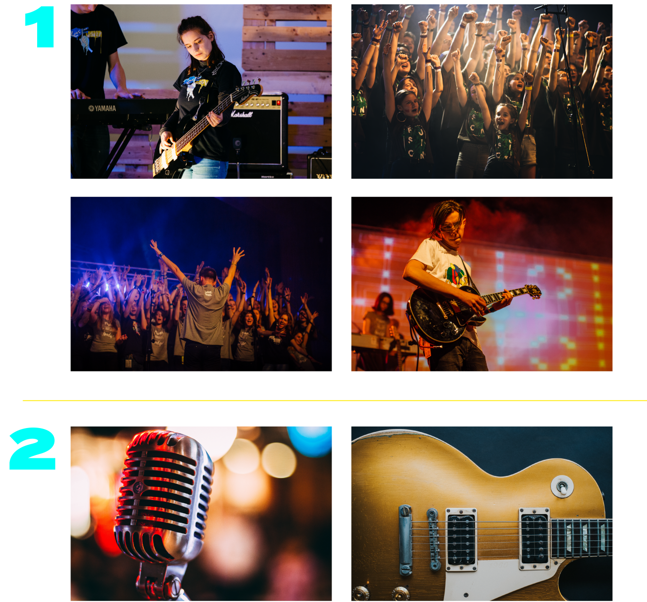 Primarily, photos should aim to depict groups of people practicing music, performing and singing in groups, and several people having a good time. Photos should always focus on people enjoying music and enjoying fellowship.