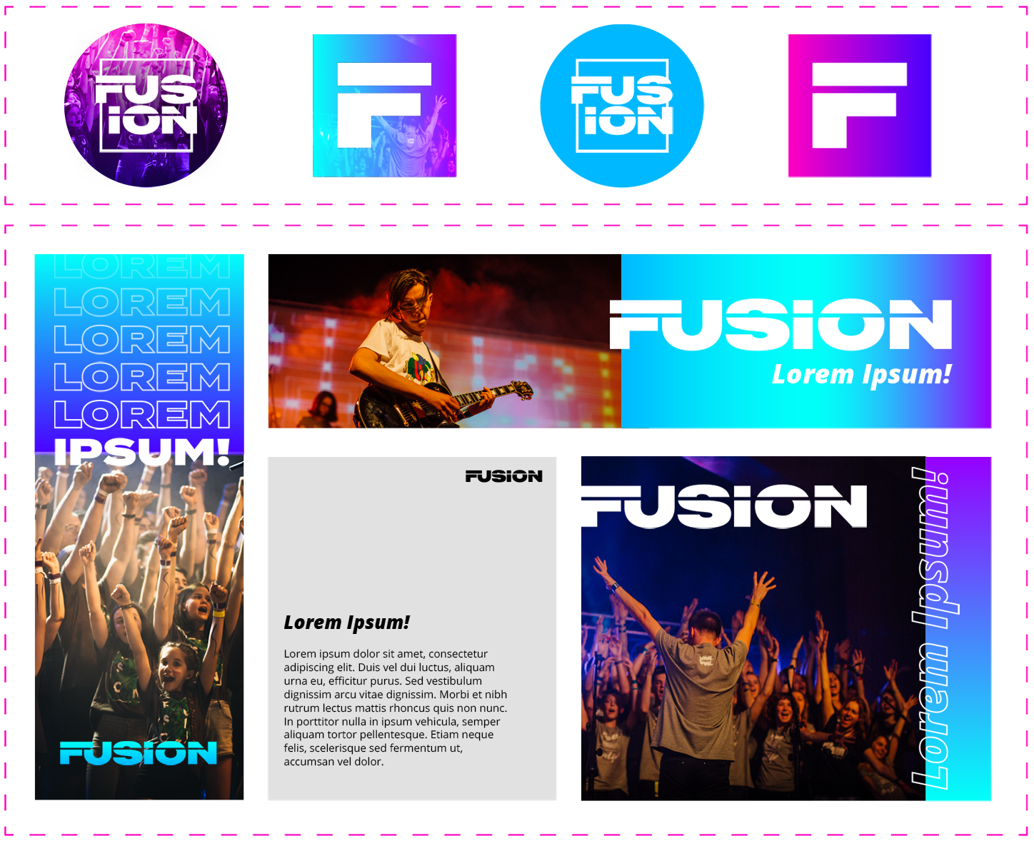 For individual local churches and youth groups who are creating content for their own Fusion, there is total creative liberty for design and branding. Individual local Fusions can design logos and event/promotional media that meets their individual needs.