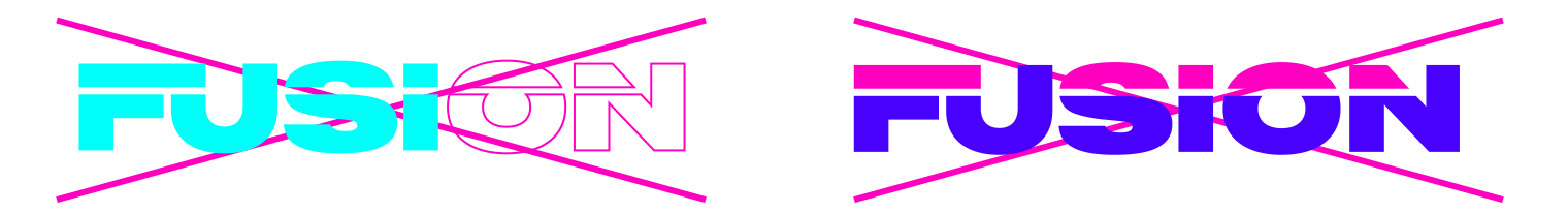The main colors for the Fusion logo are black and white. Other than that, teams can use any set of clean color combinations that add energy and life to the visuals.