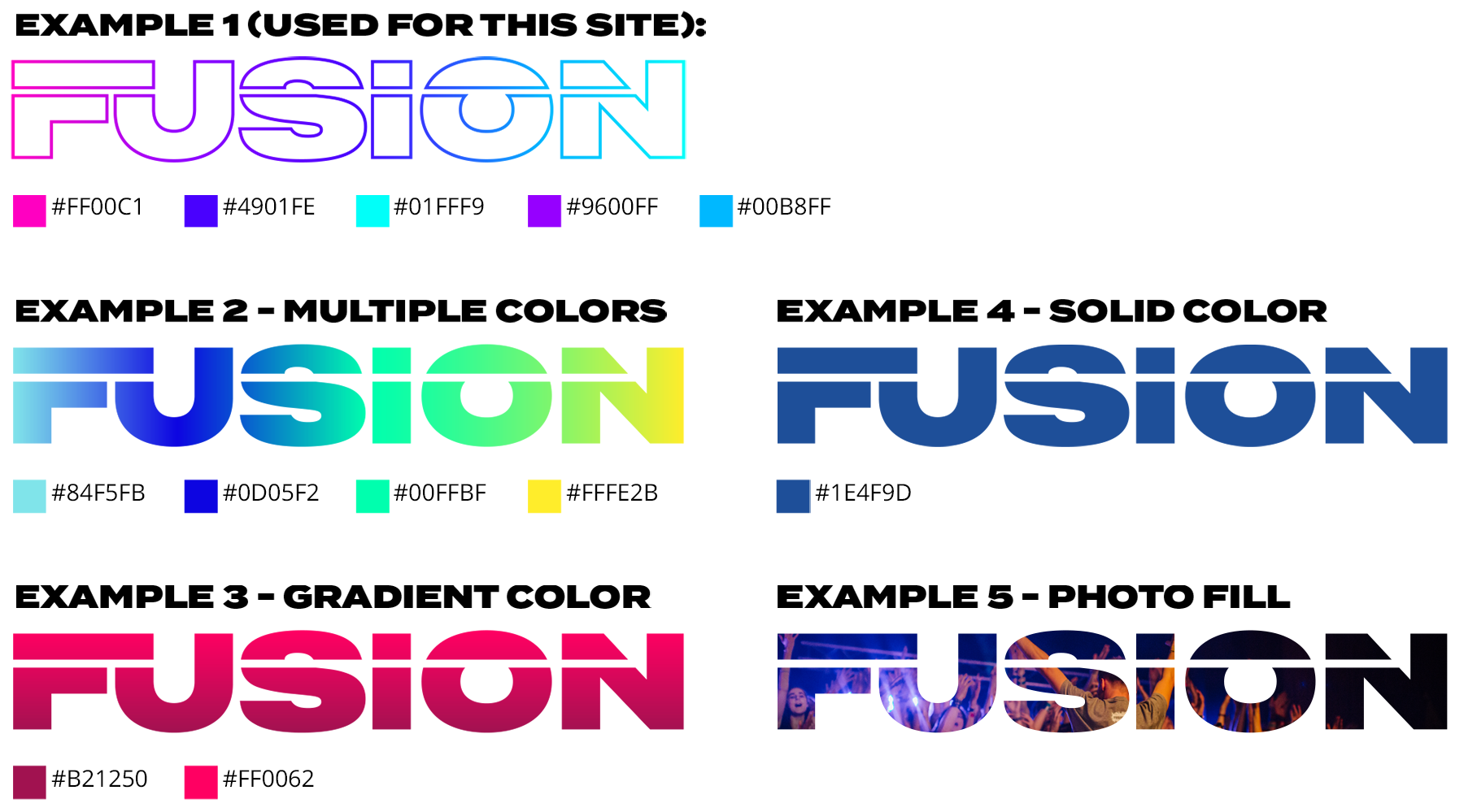 Fusion’s branding strength is in the forms of the logo and other graphics – built in a way to be creatively flexible. A color is a place of creative flexibility for this branding.